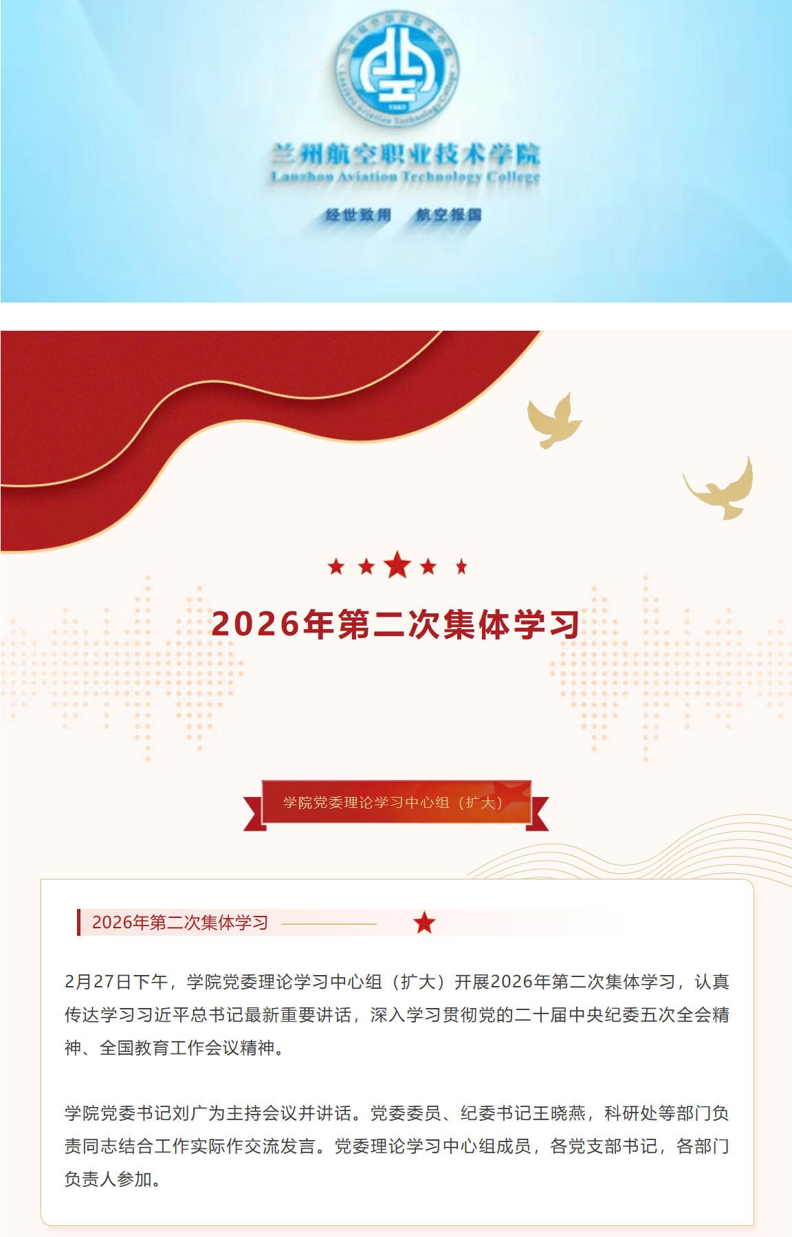 学院党委理论学习中心组(扩大)开展2026年第二次集体学习
