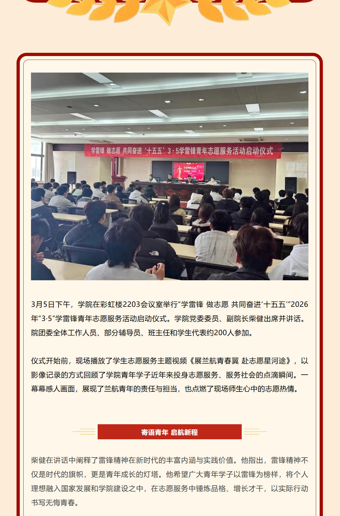 学院启动2026年“3·5”学雷锋青年志愿服务活动