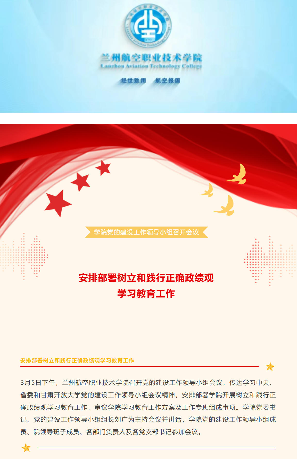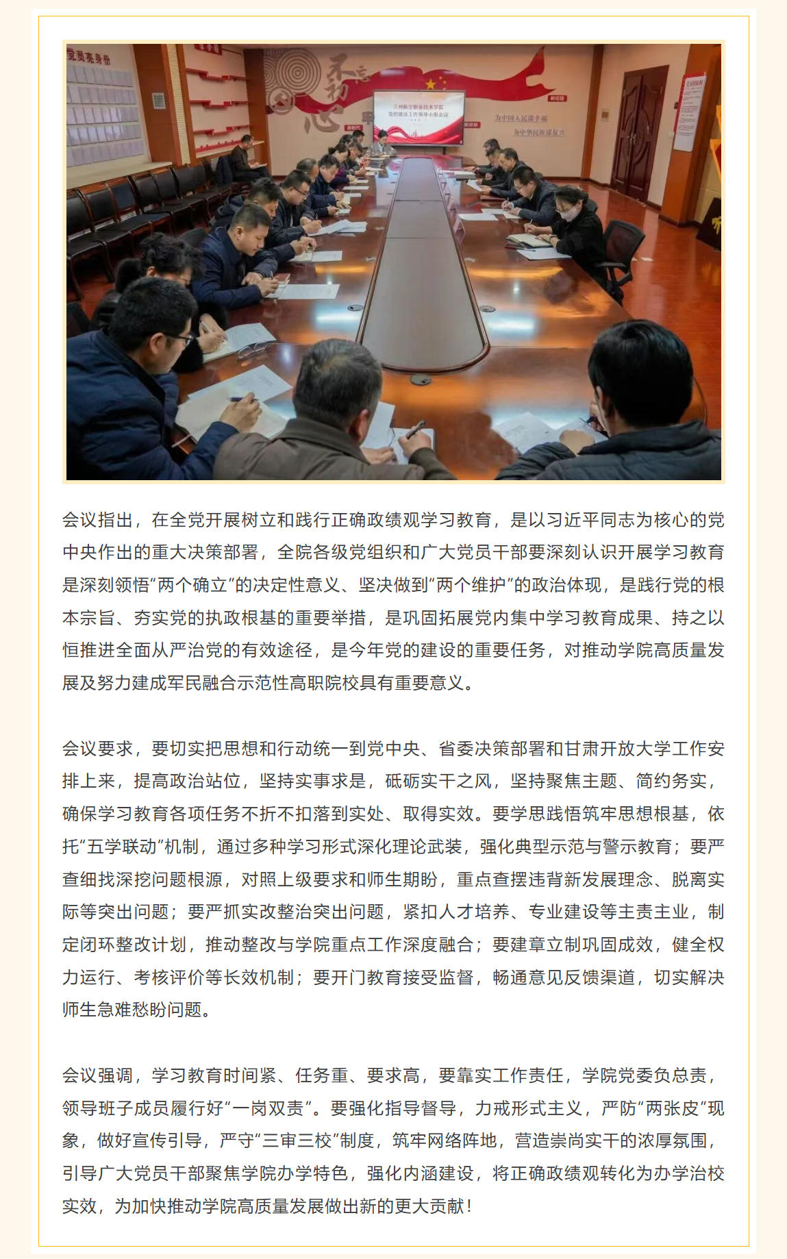 兰州航空职业技术学院党的建设工作领导小组召开会议 安排部署树立和践行正确政绩观学习教育工作